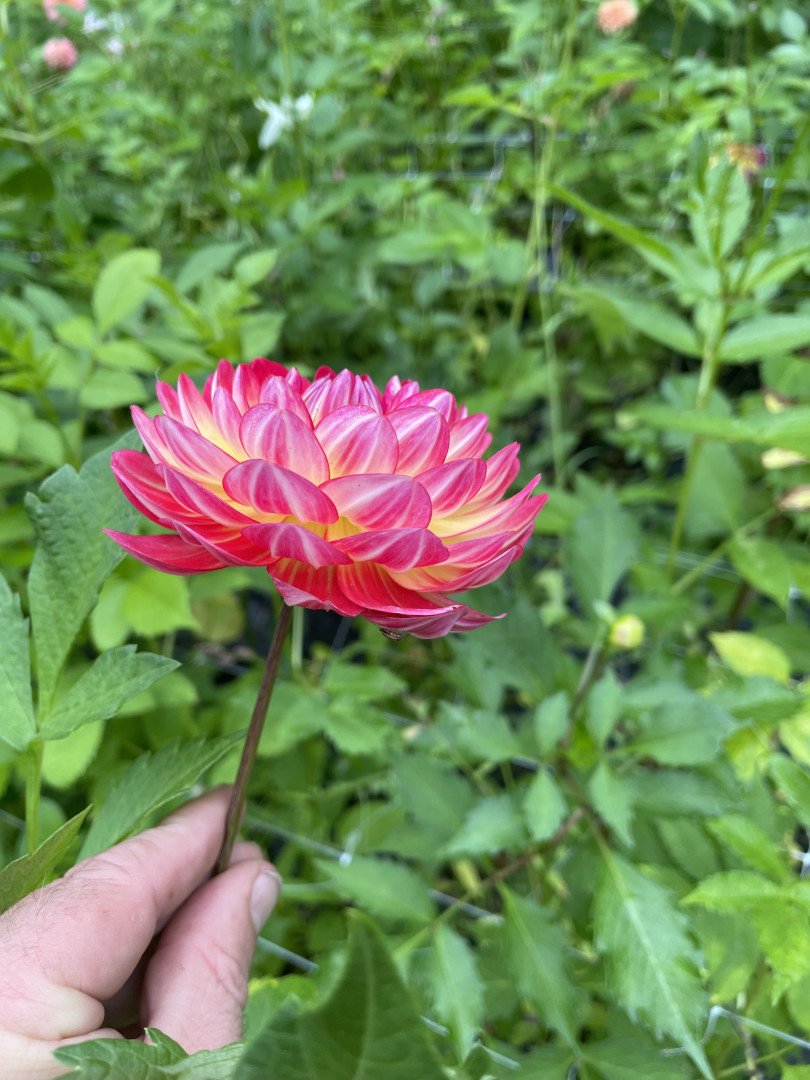 I agree I am wanting more 2 foot or so tall plants. I think the shorter plants are easier to integrate into the landscape. I actually avoided growing dahlias for years because I didn’t want to be bothered to stake plants. I took a bride to be plant, chopped it into 3 pieces and used it in some gaps in my landscaping. I would say it’s growing about 3 feet tall but also not in full sun. Matilda Houston, Mary Jo, bitsy, and Milo have all been short plants I haven’t needed to stake. I have a Mary Jo seedling I’m on the fence about keeping, it’s loaded with blooms, short I’d say just under 2 feet, cute cheerful flowers but not great center. It will probably end up in my MIL’s garden