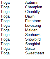 Kenora Ontarioi was in my garden in 1992 . The Tioga seedlings were not wel ditributed when they came out.