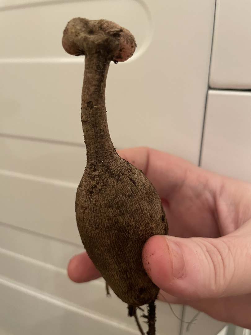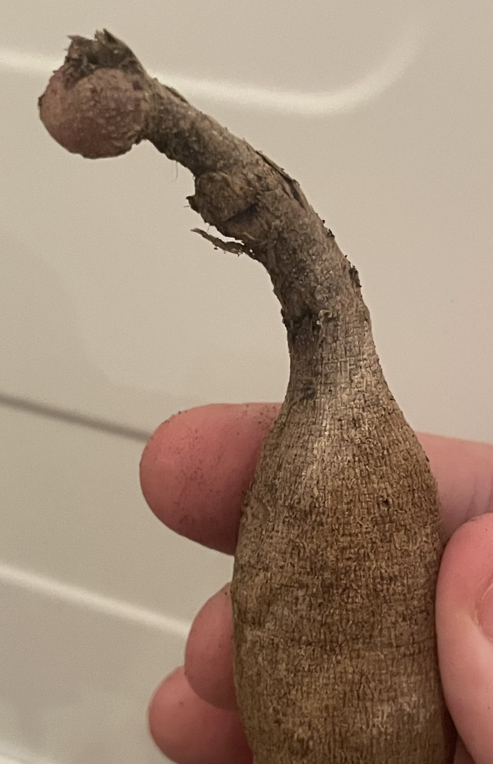 The crown gall you have all helped me identify is from a «Garden Wonder» tuber that was supposed to be a tuber of «Zorro». I have no previous experience with either leafy or crown gall and I’m really overwhelmed by all of this. I noticed that both «Garden Wonder» tubers only produced one single stem/shot. I’ve never seen a growing pattern like this in the 15 years I’ve grown dahlias. And the leaves were set high, giving the impression of some palm. Is this a sign of crown gall?