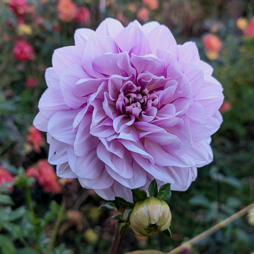 We need to get serious about this winter prep thing in the dahlia patch. Hubby is going in for some fairly minor surgery next week, that will make digging difficult and inadvisable for him for a few weeks. I have the garden maybe 2/3 labeled and cut down...will continue that while he gets to the digging and washing. We are starting out with sunshine this morning but I don't think it is to last long....